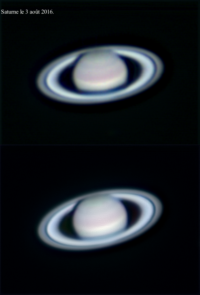 Saturne 1 Juillet 2016 Saturne 11 juillet 2016 31 JUILLET 2016 Saturne 7 août 2016 Saturne 20 août, 2016,  C11+Powermate  2x +Caméra ZWO ASI 290 MM Saturne le 4 septembre 2016 Saturne 5 sept 2016 C11, powermate 2x Camera ZWO asi290	 12500 images sur 25000 par  Couleur RGB Traitement AS2,  Reg6, PS2015.5